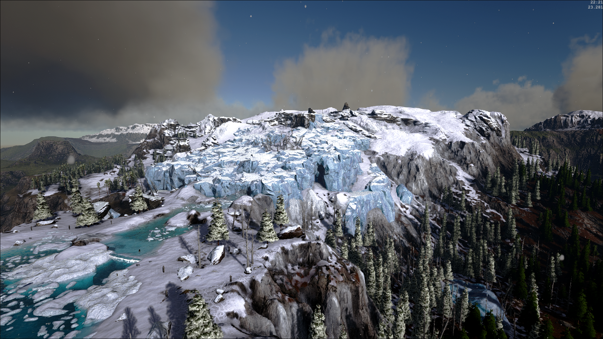 Kilometer environment featuring an active volcano.
